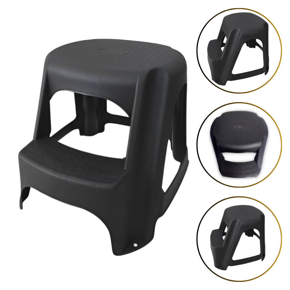 Banco escada Plástico banqueta step multiuso 2 degraus preto